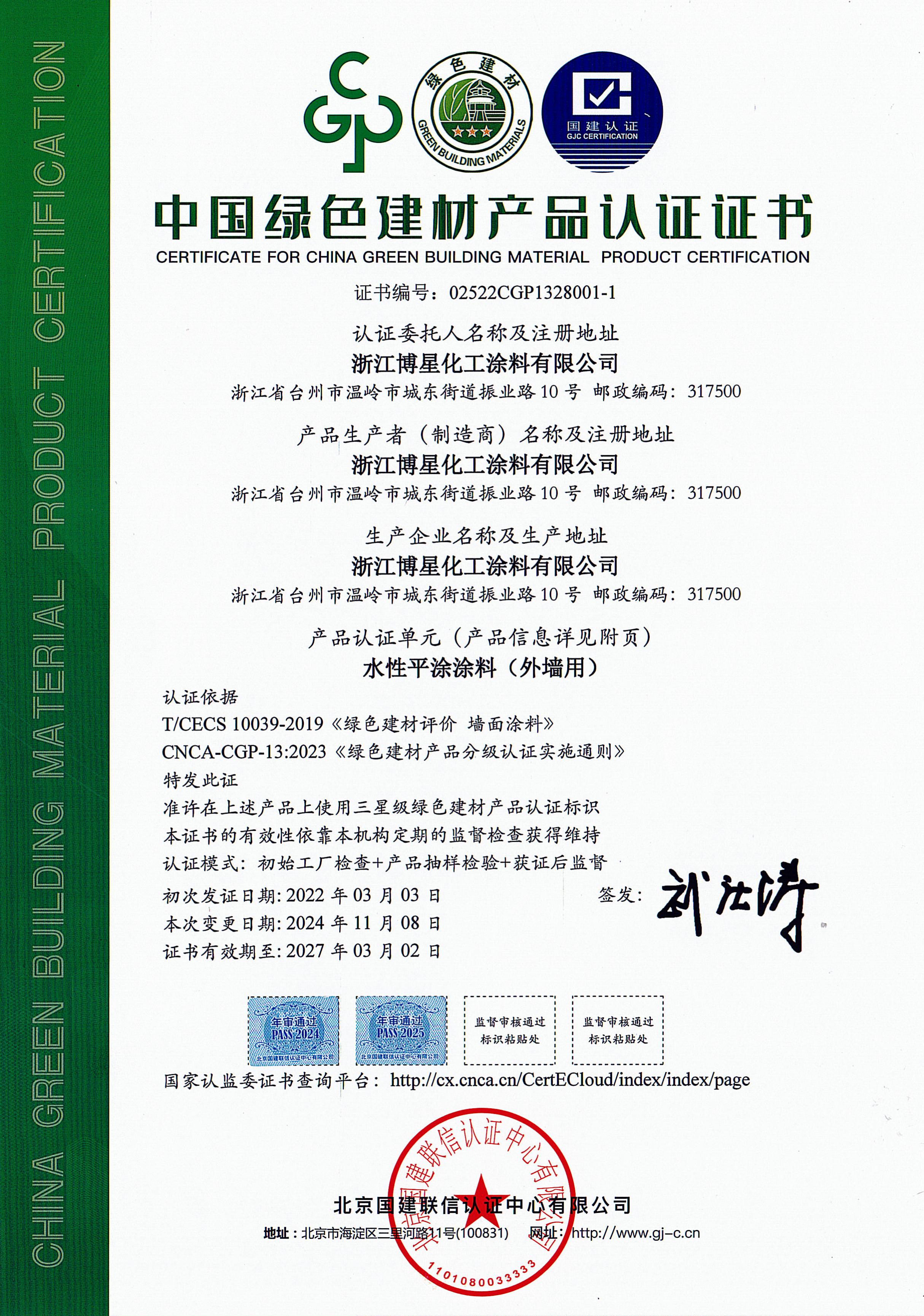 中国绿色建材产品认证证书2